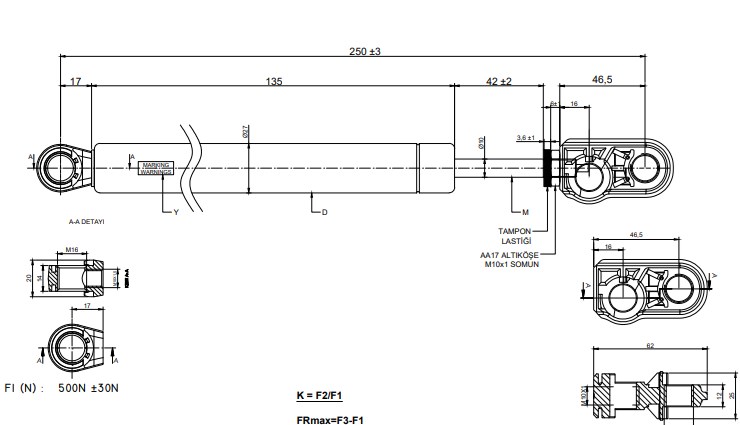 500 N kuvvet değerine sahip olup, orijinal ölçülerde birebir uyumludur.
