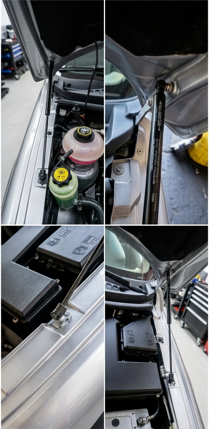 🛡️ Frenli (Slow-Open) Sistem: Kaput fırlayarak açılmaz. Özel frenli yapısı sayesinde son noktaya kadar yavaş ve güvenli bir şekilde açılır, mekanizmayı yormaz.